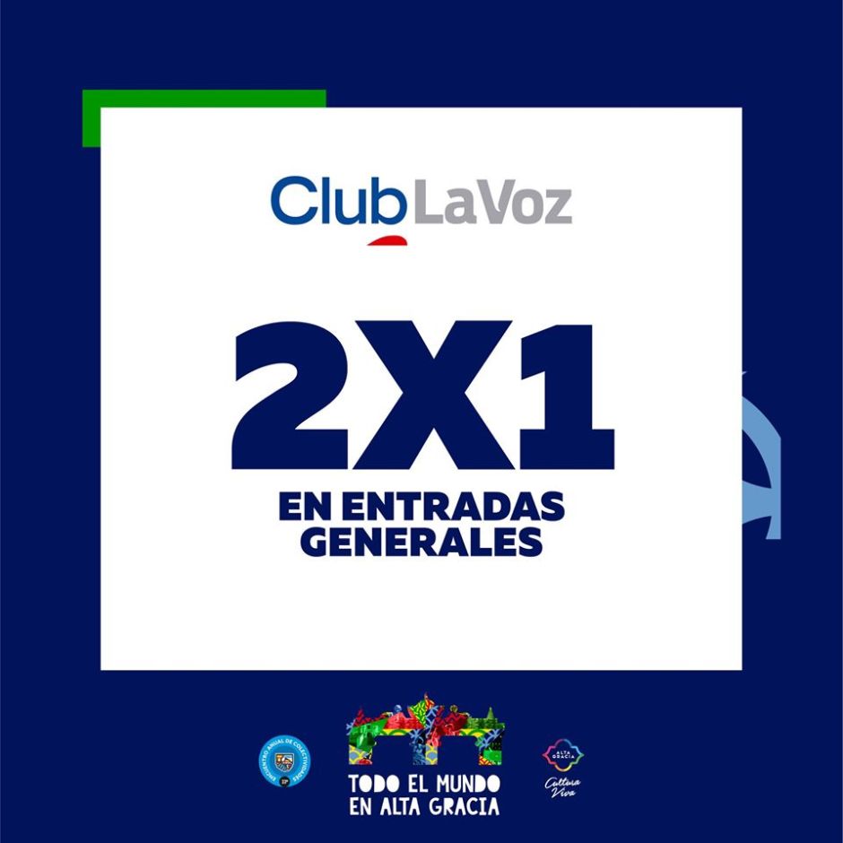 Si sos socio de Club La Voz aprovechá el BENEFICIO DEL 2X1* para sacar tu ENTRADA GENERAL 🎟 y disfrutar de la #FIESTAMÁSLINDA de Alta Gracia.