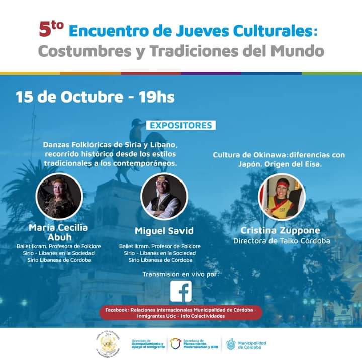 Este ciclo, organizado por la *Ucic* (Unión de Colectividades de Inmigrantes de Córdoba) junto a la *Dirección de Apoyo y Acompañamiento al Inmigrante de la Municipalidad de Córdoba*, se desarrollará hasta fin de noviembre.