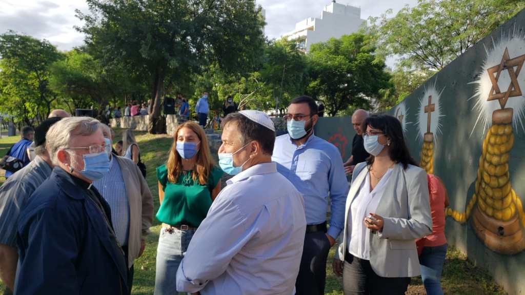Además, estuvieron presentes autoridades municipales, entre ellos el Secretario de Gobierno Miguel Siciliano en representación del Intendente Martín Llaryora y Mara Pedicino, Subdirectora de Culto, Mariano Montedoro y la artista Ivanna Montoya, autora del mural.