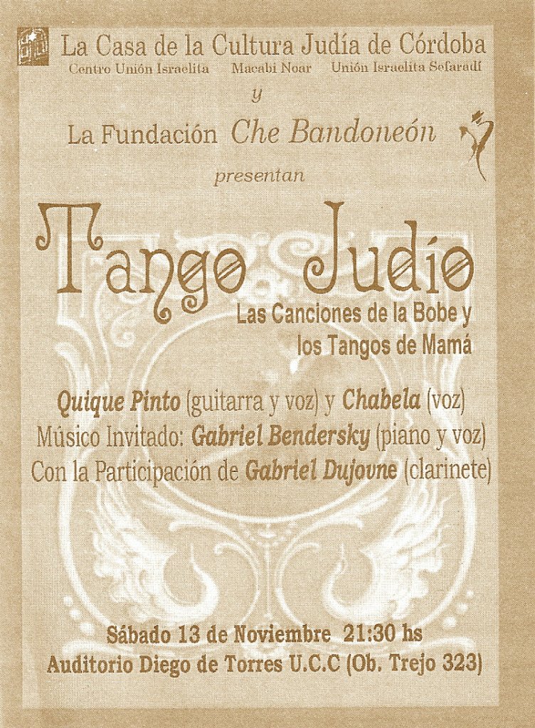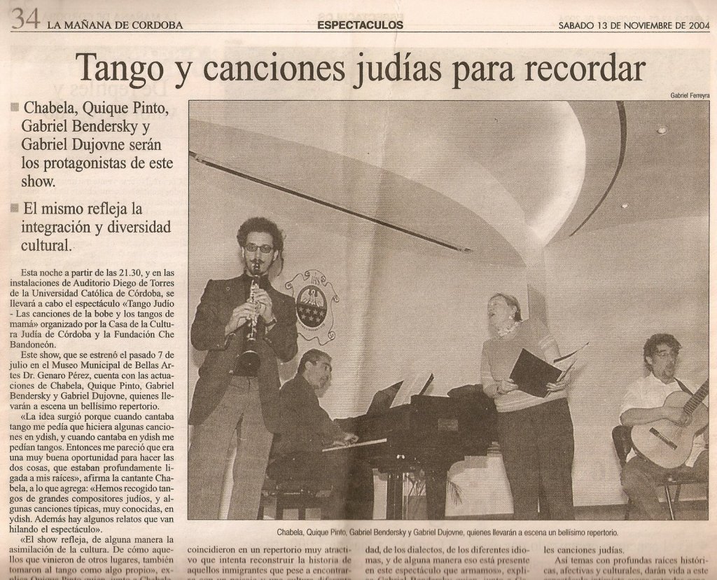 - Presentación de Libe Milonguita – Chabela en el Viejo Tortoni; Ciclo Música Popular, junto a Alejandro Arneri, en la Sala Luis de Tejeda.