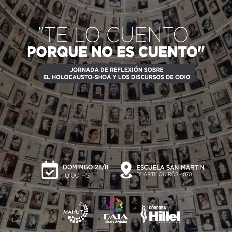 Porque la memoria colectiva nos une, nos acerca y previene los prejuicios y la discriminación. Por eso esta invitación a participar de este encuentro que permitirá contar una historia pasada, para seguir construyendo un futuro mejor. Esta actividad está organiza Daia filial Córdoba, Hillel Córdoba y Mahut.