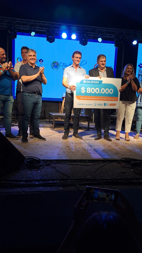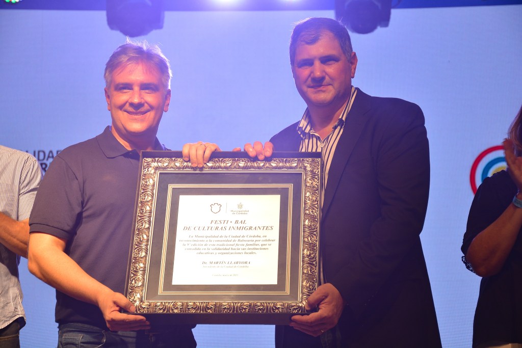 El la segunda jornada del Festi-Bal contó con el acompañado de intendentes y legisladores, y referentes de Hacemos por Córdoba. El intendente de Córdoba y candidato a Gobernador de la Provincia, Martín Llaryora, subió al escenario principal donde entregó un reconocimiento por esta fiesta de Culturas Inmigrantes al intendente Miguel Méndez, luego de participar de la inauguración de las remodelaciones de la terminal de ómnibus.