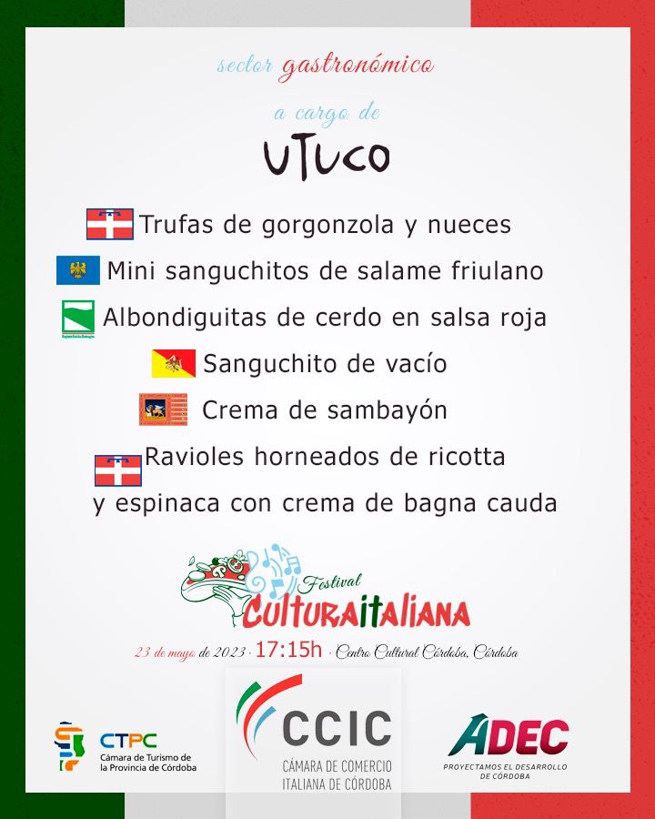 Y el broche de oro fue el momento gastronómico donde se pudo disfrutar de comidas típicas italianas elaboradas con productos y aromas cordobeses. 🇮🇹 🇦🇷 Esto estuvo a cargo de UTUCO: