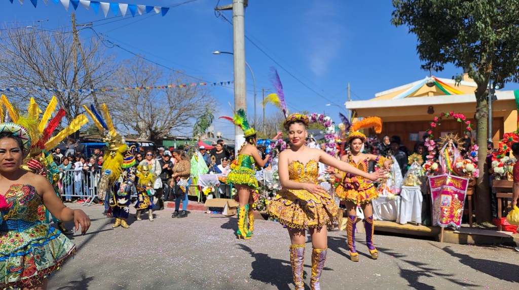 El sábado a partir de las 9:30 h a la misa inició la jornada, que se hizo en la parroquia Nuestra Señora del Trabajo (Av. de Mayo 350, esquina Río Negro, frente a la plaza). Luego, hubo bailes típicos y puestos de comida boliviana. Y para continuar con el acto de la festividad, se acompañó la salida de la Virgen, el cambio de pasantes, la procesión, la bendición de arcos y cargamentos, y el izamiento de las banderas de Argentina, Bolivia y la Wiphala.