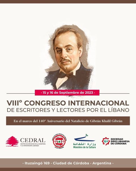 En el marco de 140° Aniversario del natalicio de Gibrán Khalil Gibrán se realizará en Córdoba, el 15 y 16 de septiembre, en las instalaciones de la Sociedad Sirio Libanesa de Córdoba, en calle Ituzaingó 167, segundo piso. Se podrá optar por la modalidad presencial o virtual.