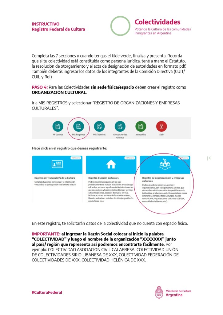 Para registrar la colectividad ingresar a: https://somos.cultura.gob.ar/
