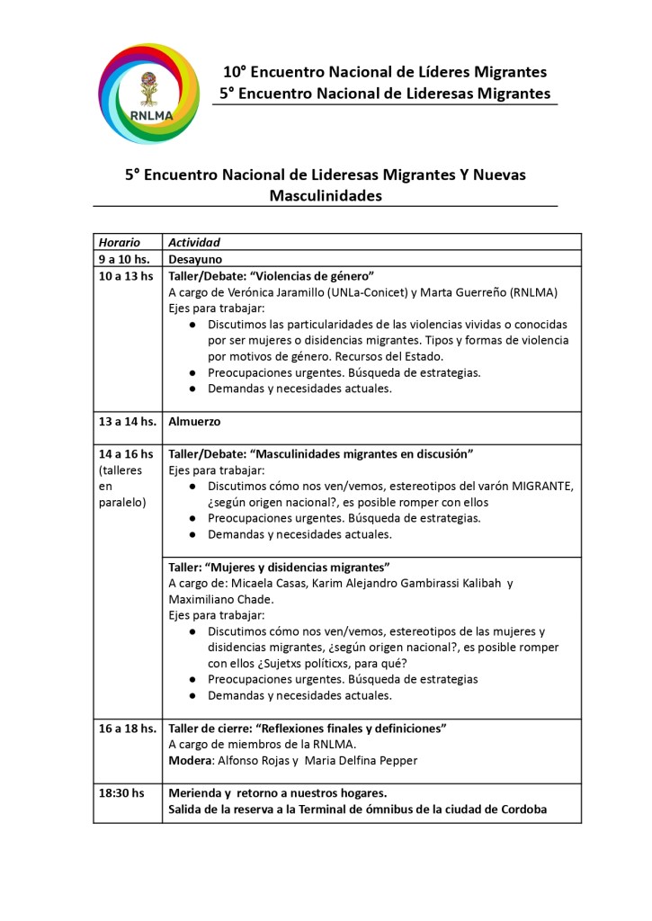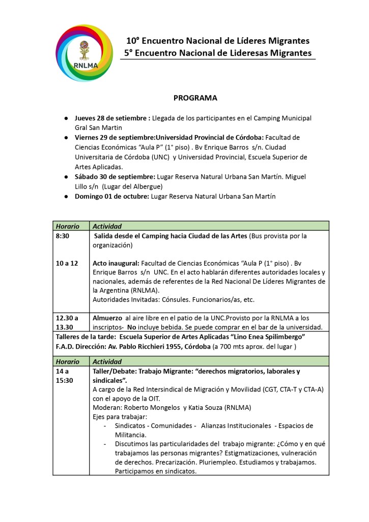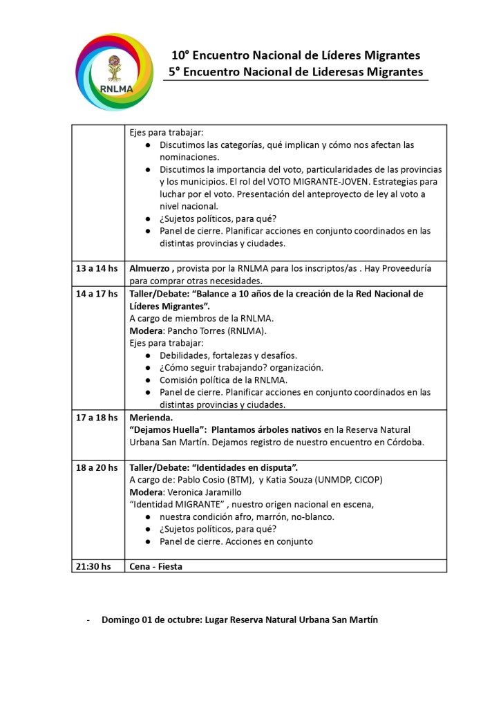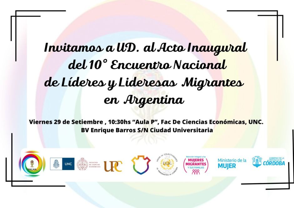 Del 28 de septiembre al 1 de octubre de 2023 se realizará en la ciudad del Córdoba el 10° Encuentro Nacional de Líderes Migrantes en Argentina y el 5° Encuentro Anual de Lideresas Migrantes. Organizado por la Red Nacional de Líderes Migrantes en Argentina. Compartimos la programación.