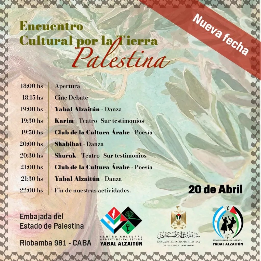 🇵🇸 En un evento que promete ser un puente cultural entre los pueblos, el Centro Cultural Yabal Alzaitún, en colaboración con la Embajada del Estado de Palestina en Argentina, extiende una cordial invitación al público general para el «Encuentro Cultural por la Tierra Palestina».