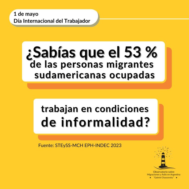 Según datos de la Secretaría de Trabajo, Empleo y Seguridad Social del Ministerio de Capital Humano, el 53 por ciento de los migrantes sudamericanos se desempeña de manera informal en rubros como: trabajo doméstico, comercio, construcción e industria textil.