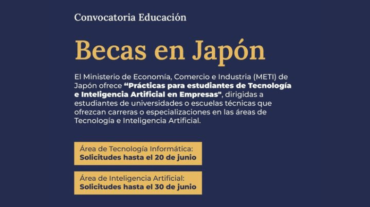 El Ministerio de Economía, Comercio e Industria (METI) de Japón abre convocatoria para estudiantes de universidades o escuelas técnicas especializadas en Tecnología e Inteligencia Artificial.