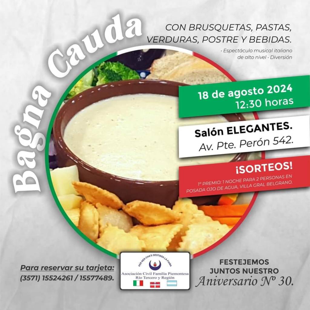 - 18 de agosto: Río Tercero volverá a ser protagonista con la Fiesta de 30 Aniversario de la Bagna Cauda organizada por la Asociación Civil Familia Piemontesa, y Colonia Caroya continuará con su Fiesta de las Comidas Típicas Caroyenses.