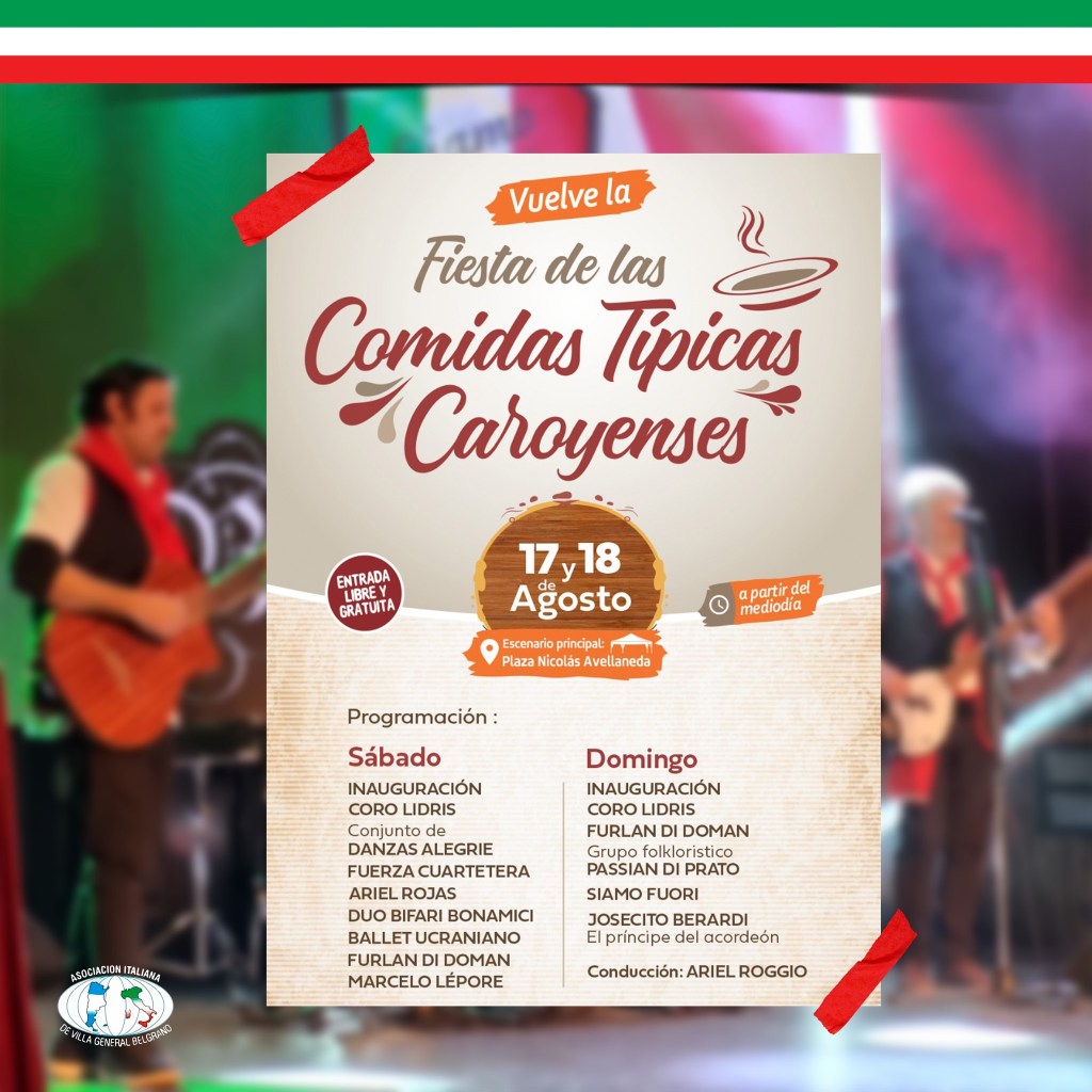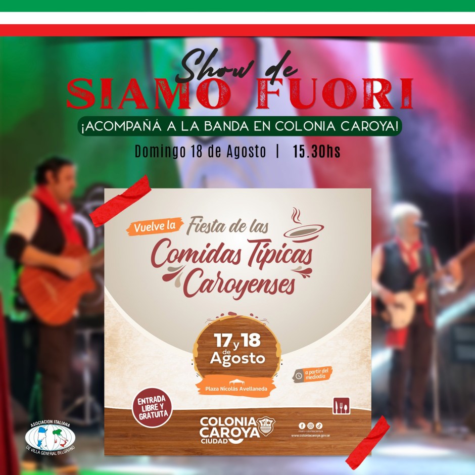 Colonia Caroya se prepara para vivir una fiesta llena de sabor y música. La tradicional Fiesta de las Comidas Típicas Caroyenses, que se realizará los días 17 y 18 de agosto en la Plaza Nicolás Avellaneda, contará con la presencia estelar de la banda italiana Siamo Fuori.