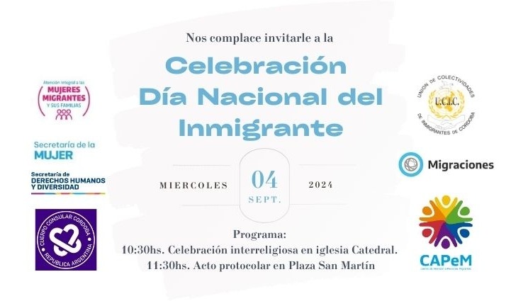 Córdoba se prepara para celebrar el Día Nacional del Inmigrante, una fecha que conmemora la llegada de millones de personas a nuestro país en busca de un futuro mejor. Este año, las actividades centrales se llevarán a cabo el miércoles 4 de septiembre y reunirán a diversas instituciones y colectividades.