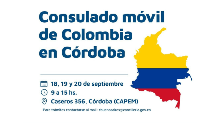 Una excelente noticia para la comunidad colombiana residente en Córdoba. Los días 18, 19 y 20 de septiembre, el Consulado Móvil de Colombia se instalará en las instalaciones de CAPEM (Centro de Atención a Personas Migrantes y Refugiadas), ubicado en la calle Caseros 356.
