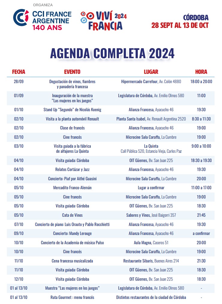 ¡No esperes más! Consulta el programa completo en https://vivifrancia.com.ar/2024/provincia-cordoba/ y prepárate para vivir Francia en Córdoba.