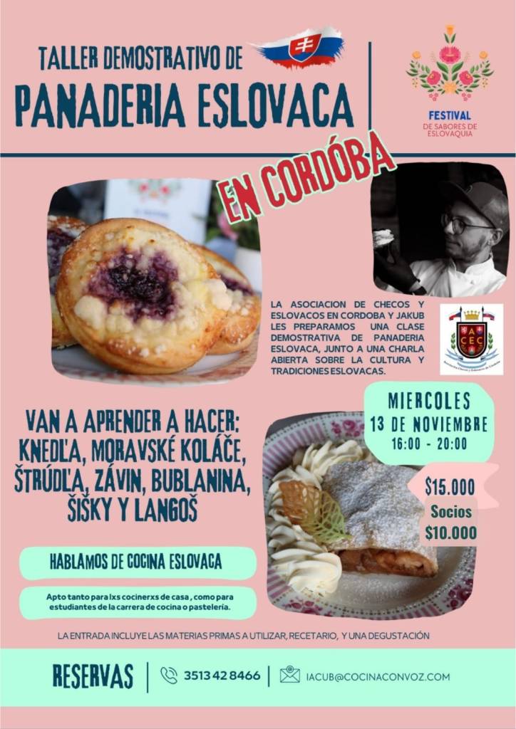 El taller, organizado por la Asociación de Checos y Eslovacos en Córdoba, se llevará a cabo en Celia Escuela Integral de Gastronomía [Dirección: Gral Paz 414] y tiene un costo de $15.000. Para los socios de la asociación, el valor es de $10.000. El precio incluye todos los ingredientes necesarios, un cuadernillo con las recetas y una degustación al finalizar la clase.