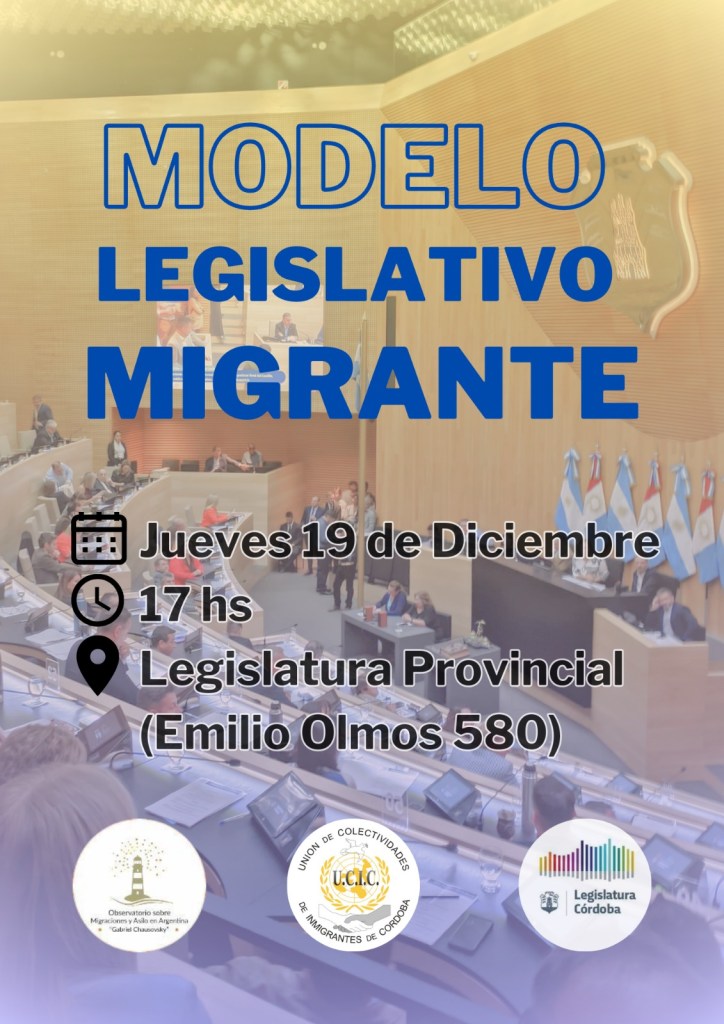 Córdoba se prepara para una jornada de reflexión y acción en torno a los derechos de las personas migrantes. En conmemoración del Día Internacional del Migrante, que se celebra cada 18 de diciembre, la Unión de Colectividades de Inmigrantes de Córdoba (UCIC) llevará a cabo una Simulación Legislativa en el Recinto de la Legislatura provincial. El evento, que tendrá lugar el jueves 19 de diciembre a partir de las 17 h (con inicio de sesión a las 18 h) en Emilio Olmos 580, busca visibilizar el aporte de las colectividades migrantes y promover políticas públicas inclusivas.