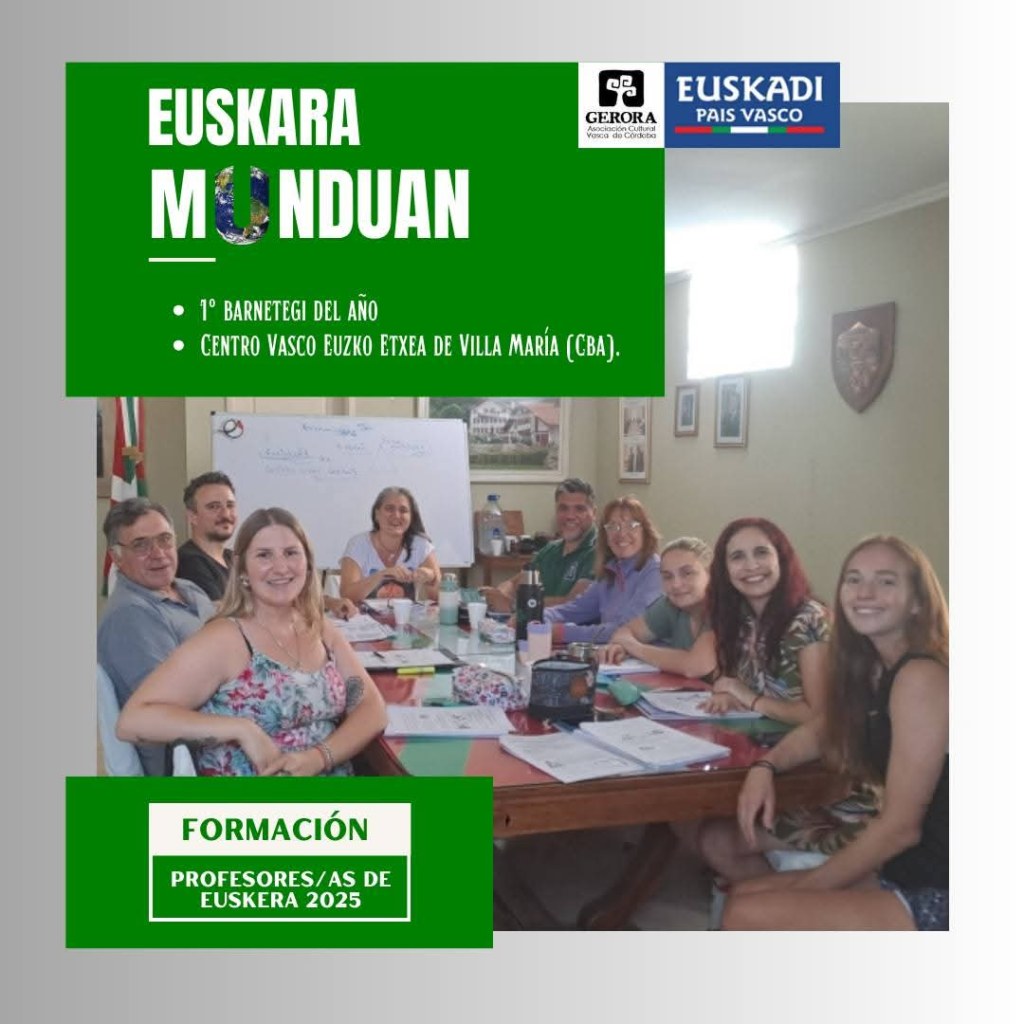 El curso, que forma parte de una iniciativa creada en 1990 para recuperar el conocimiento del euskera en los centros vascos de Argentina y otros países, estuvo a cargo de los profesores Sabrina Otegui y Gabriel Arce. La coordinación del encuentro estuvo en manos de Gabriela Mendia, de la Federación de Entidades Vasco Argentinas (FEVA), y Kinku Zinkunegi, de Etxepare.