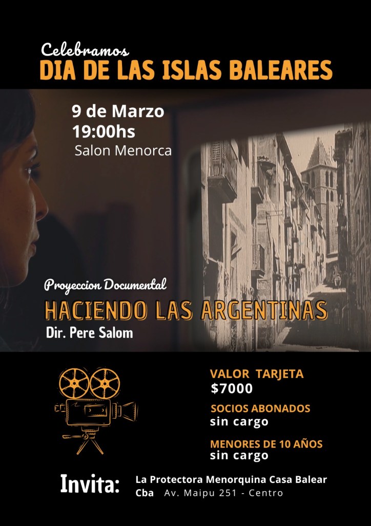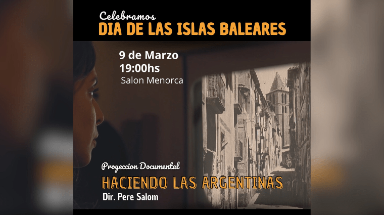 En el marco de la celebración del Día de las Islas Baleares, la Protectora Menorquina – Casa Balear Córdoba ha organizado un evento cultural significativo. El próximo domingo 9 de marzo, a las 19:00 horas, se llevará a cabo la proyección del documental «Haciendo las Argentinas» del reconocido director Pere Salom en el Salón Menorca, ubicado en la sede de la Protectora Menorquina en Maipú 251.