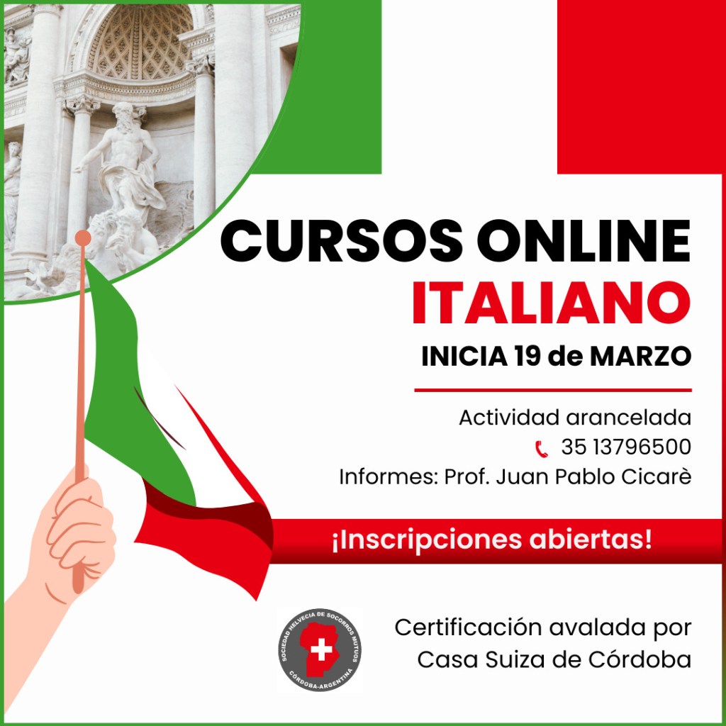 La Casa Suiza de Córdoba, en colaboración con el profesor Juan Pablo Cicarè, abre inscripciones para sus cursos online de italiano, que darán inicio el 19 de marzo. Esta propuesta educativa, dirigida a personas de todos los niveles, busca acercar la riqueza del idioma italiano a través de una modalidad virtual accesible y flexible.