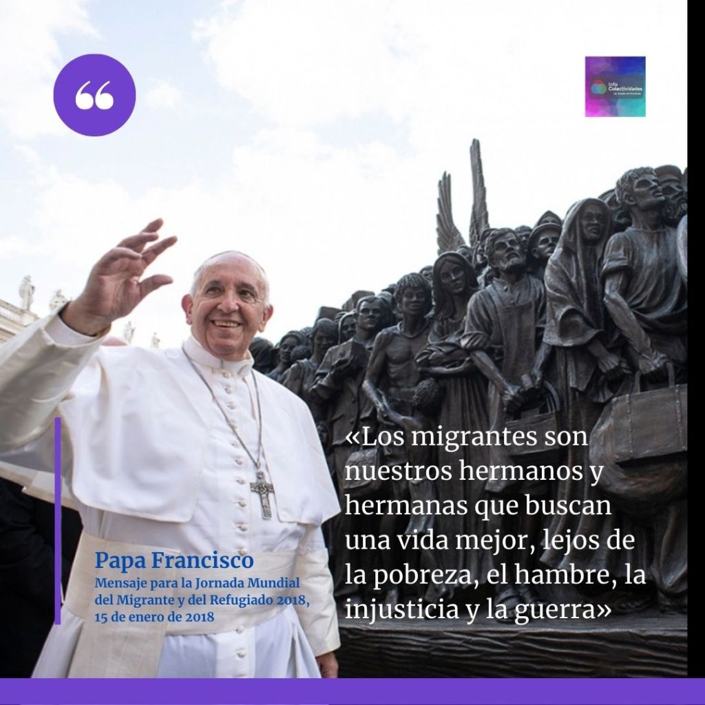- «Los migrantes son nuestros hermanos y hermanas que buscan una vida mejor, lejos de la pobreza, el hambre, la injusticia y la guerra» (Fuente: Mensaje para la Jornada Mundial del Migrante y del Refugiado 2018, 15 de enero de 2018).