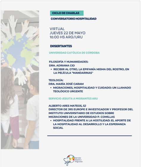 Este jueves 22 de mayo, las Facultades de Teología, y de Filosofía y Humanidades de la Universidad Católica de Córdoba (UCC) y el Servicio Jesuita a Migrantes (SJM) Argentina llevarán a cabo el conversatorio virtual «Migración y Hospitalidad». El evento, que se realizará a las 16 hs, abordará la temática de la migración desde una perspectiva humanística y teológica, poniendo énfasis en la importancia de la hospitalidad.