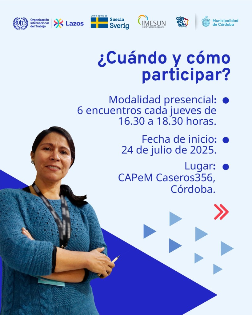 Estos talleres, enmarcados en el programa «Inicie y Mejore Su Negocio» desarrollado por la Organización Internacional del Trabajo (OIT), buscan crear una idea de negocio y/o fortalecer el emprendimiento local. Los encuentros se realizarán todos los jueves de 16:30 a 18:30 horas en CAPeM, ubicado en Caseros 356, Córdoba. Durante el programa, las participantes tendrán la oportunidad de diseñar sus ideas de negocio, mejorar proyectos existentes y unirse a una red que impulsa el trabajo independiente. Se seleccionarán 40 ideas y emprendimientos para ser potenciados.