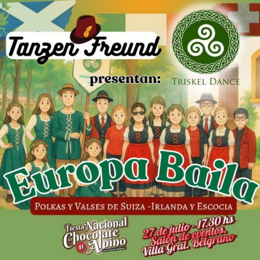 Villa General Belgrano se prepara para recibir una propuesta artística especial el próximo domingo 27 de julio a las 17:30 hs, en el marco de la Fiesta Nacional del Chocolate Alpino. Bajo el título «EUROPA BAILA», el grupo de danzas Triskel Dance presentará un espectáculo conjunto con el grupo de baile suizo “Tanzer Freunde” de Colonia Esperanza, Santa Fe, perteneciente a la Asociación Guillermo Tell.