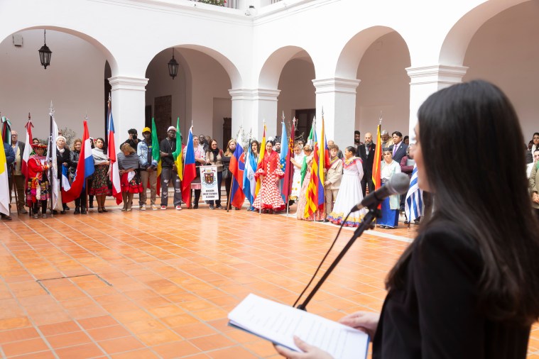 La celebración continuó en el Cabildo Histórico de Córdoba, donde se llevó a cabo el acto protocolar. Allí se entonaron las estrofas del Himno Nacional Argentino y se entregaron reconocimientos a referentes migrantes por su compromiso y labor en favor de las comunidades migrantes de la ciudad.