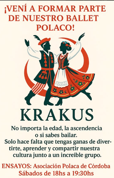 El Ballet Polaco Krakus lanzó una convocatoria abierta para sumar nuevos integrantes a su grupo de baile. La invitación está dirigida a toda persona interesada en vivir la cultura polaca de una forma activa y lúdica.