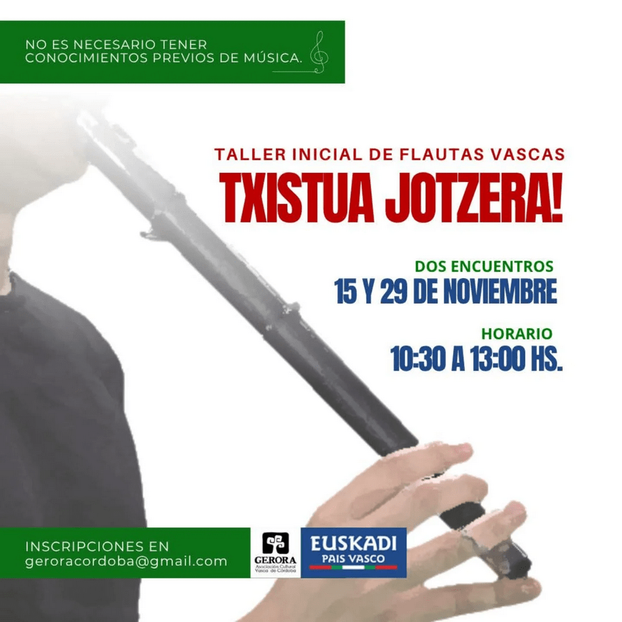 La asociación Gerora Córdoba invita a la comunidad a participar en el «Taller Inicial de Flautas Vascas: Txistua Jotzera!», una actividad gratuita diseñada para descubrir y aprender a tocar el txistu, el instrumento de viento tradicional del País Vasco.