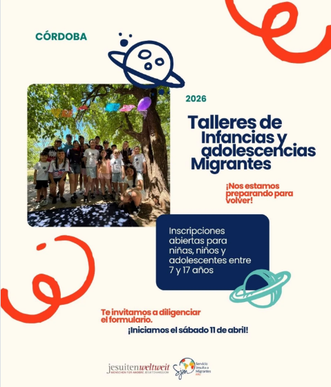 El área de educación del Servicio Jesuita a Migrantes (SJM) ARU en Córdoba anunció la apertura de inscripciones para sus talleres 2026, una propuesta diseñada específicamente para hijos de familias migrantes y refugiadas. Los encuentros, que se desarrollarán bajo una modalidad lúdico-pedagógica, tienen como objetivo principal brindar un espacio de contención, encuentro y herramientas para facilitar el proceso de integración cultural y social.