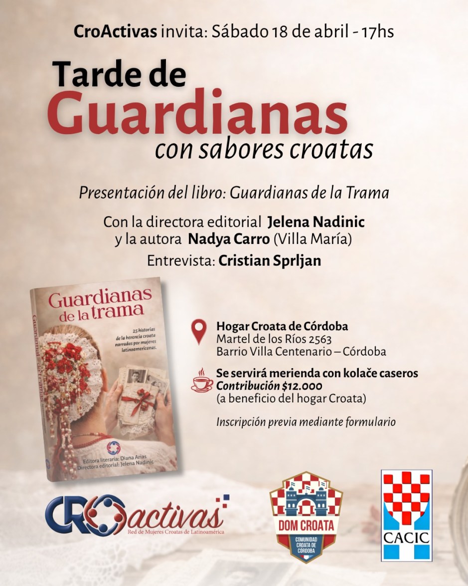 La jornada tendrá como eje central la presentación del libro Guardianas de la Trama, una obra que compila 25 historias de la herencia croata narradas por mujeres latinoamericanas. El panel contará con la presencia de la directora editorial, Jelena Nadinic, y la autora Nadya Carro, oriunda de Villa María, quienes serán entrevistadas por Cristian Sprljan para desandar los detalles de este legado escrito.