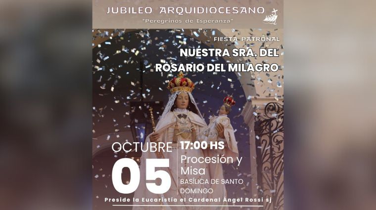 La Novena y Fiesta Patronal de Nuestra Señora del Rosario del Milagro, en el marco del Jubileo 2025, pondrá este año el foco en la realidad migrante, convocando a las comunidades a participar con las imágenes de sus patronas.