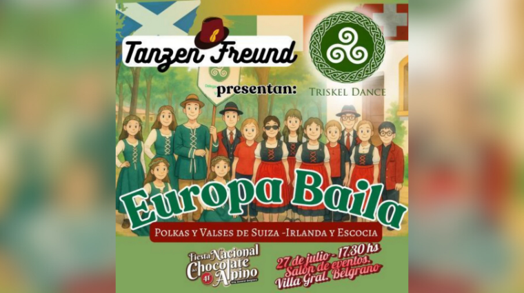 Villa General Belgrano se prepara para recibir una propuesta artística especial el próximo domingo 27 de julio a las 17:30 hs, en el marco de la Fiesta Nacional del Chocolate Alpino. Bajo el título «EUROPA BAILA», el grupo de danzas Triskel Dance presentará un espectáculo conjunto con el grupo de baile suizo “Tanzer Freunde” de Colonia Esperanza, Santa Fe, perteneciente a la Asociación Guillermo Tell.